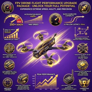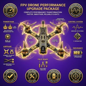 Upgrade your quad with the FPV Drone – Performance Upgrade Package. Includes motors, frame enhancements, and power system components for faster, smoother flights.